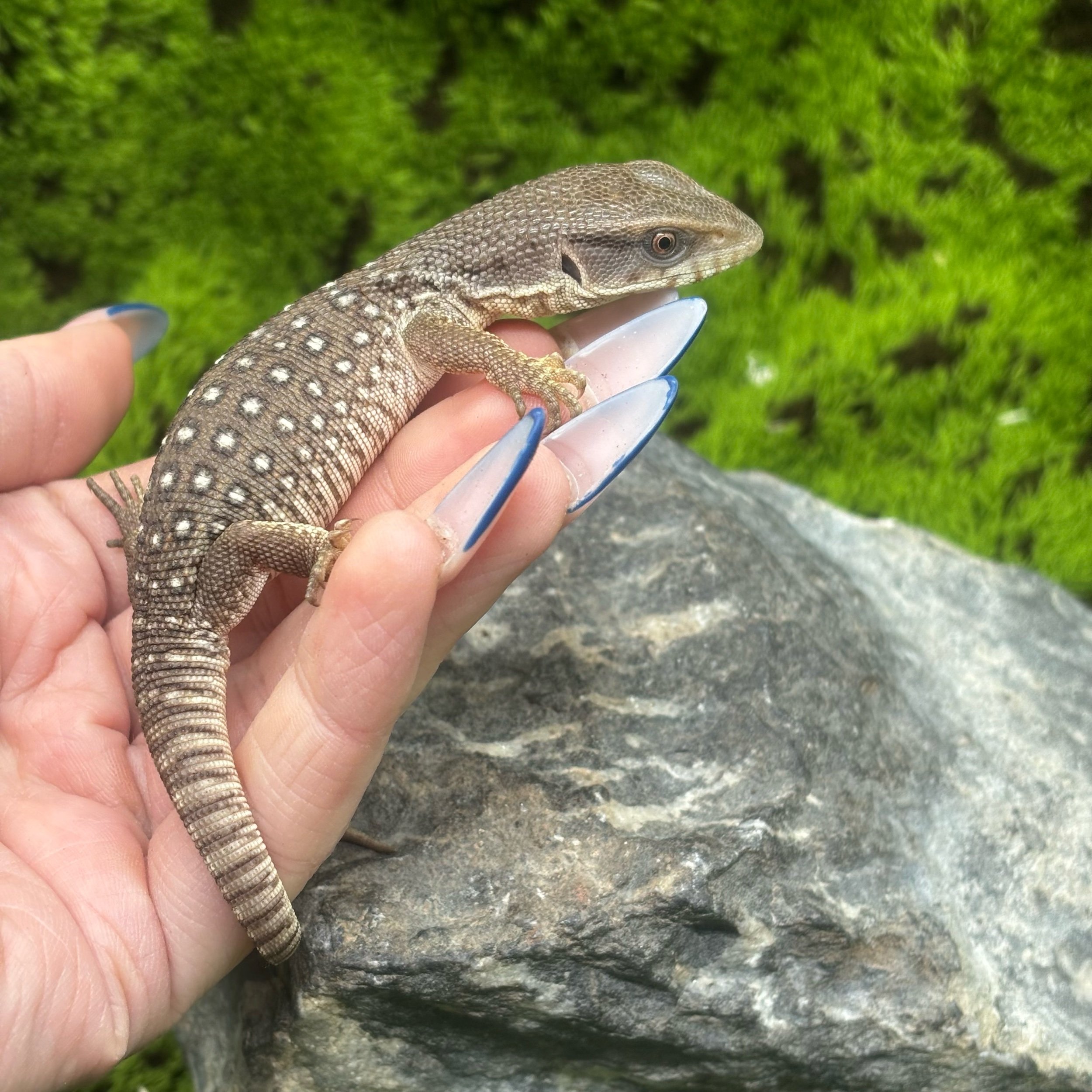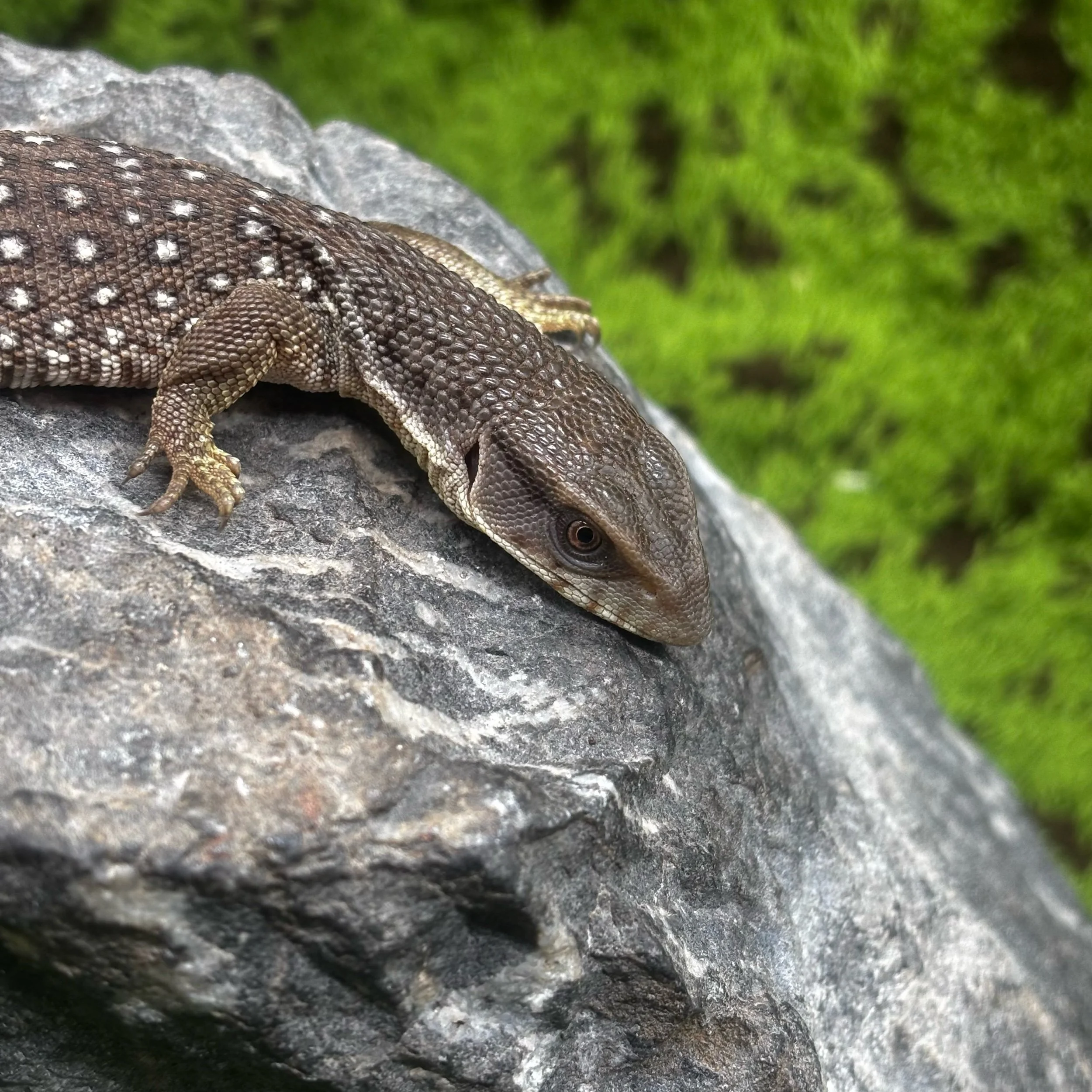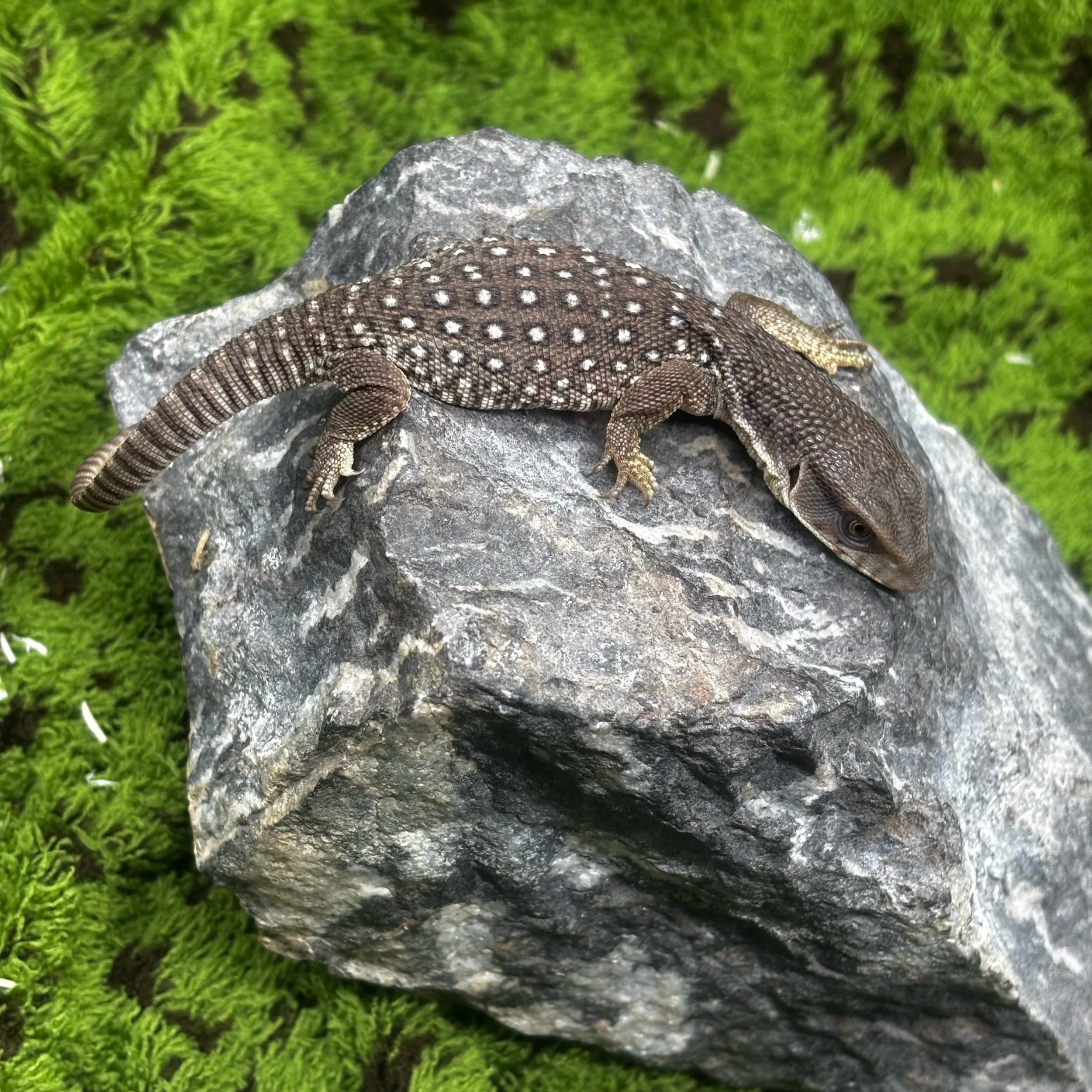 Bosc Monitors, also known as Savannah Monitors (Varanus exanthematicus), are an iconic pet monitor lizard known for their ability to become puppy-dog tame! This little one is at a great age to start working with!